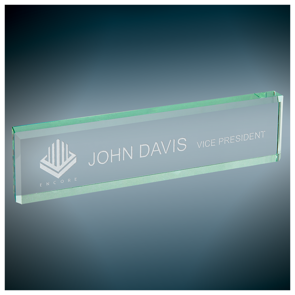 Personalization Included: YesItem Series: Clear Glass Desk WedgeItem Color: ClearStandard Imprint Technique: Laser EngravedPrimary Insert Size: n/aOptional Insert Size: n/aName Plate Size: Updating SoonProduct Category: Name WedgeTheme: n/aProduct Variations: 2Standard Turnaround Time: 1-2 Business DaysItem Packaging: Individually PackagedItem Material: Acrylic